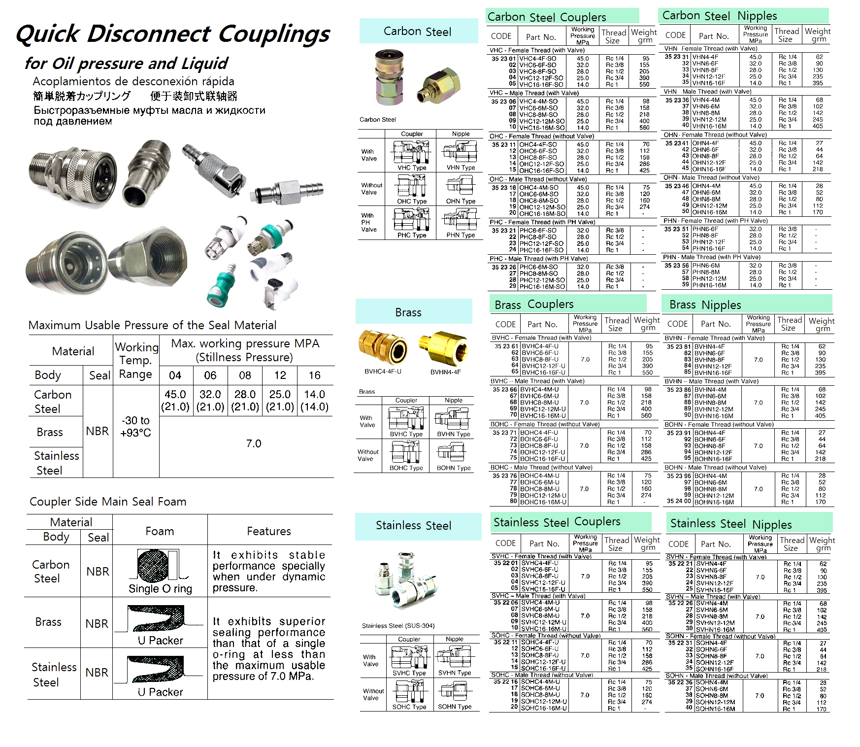 QUICK DISCONNECT BRASS COUPLING FOR OIL PRESS. AND LIQ., BOHN-MALE THREAD (W/O VALVE), RC 1/2, OHN8-8M – PC