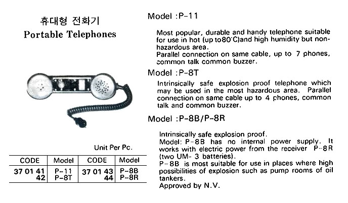 PORTABLE TELEPHONE, MODEL P-8 T INTRINSICALLY SAFE – PC