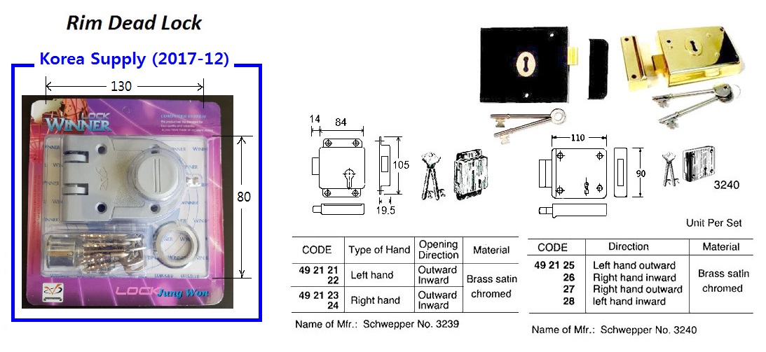 RIM DEAD LOCK, BRASS STAIN CHROM, RIGHT HAND, INWARD – SET