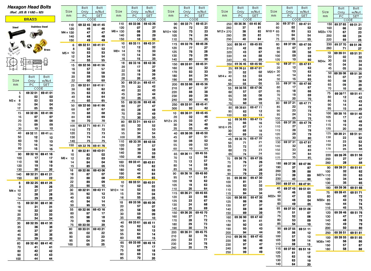 HEX. HEAD BOLT ONLY, BRASS. M12 x 105 MM – PC