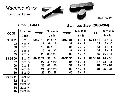MACHINE KEYS, STEEL (S-45C), 16 x 10 x 300 MM – PC