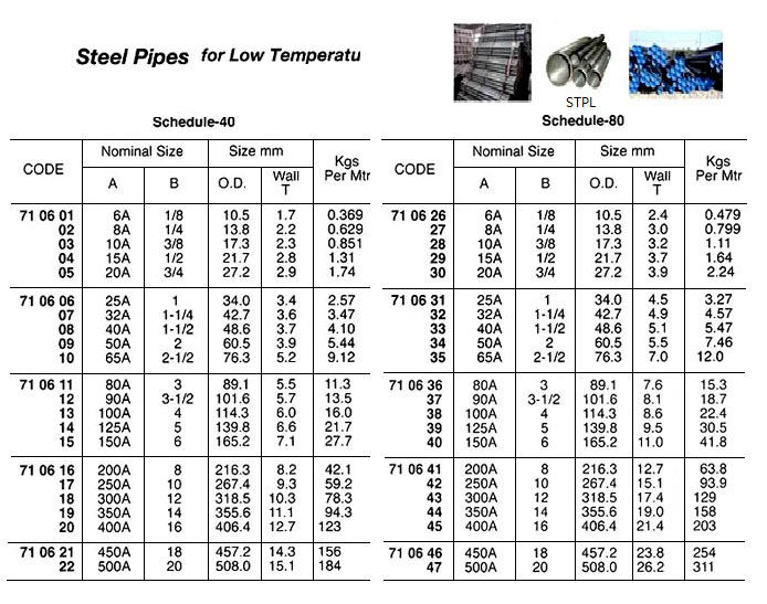 STEEL PIPE FOR LOW-TEMP. STPL, SCH-40, 4″ (100A)x 5.5 MTR – PC