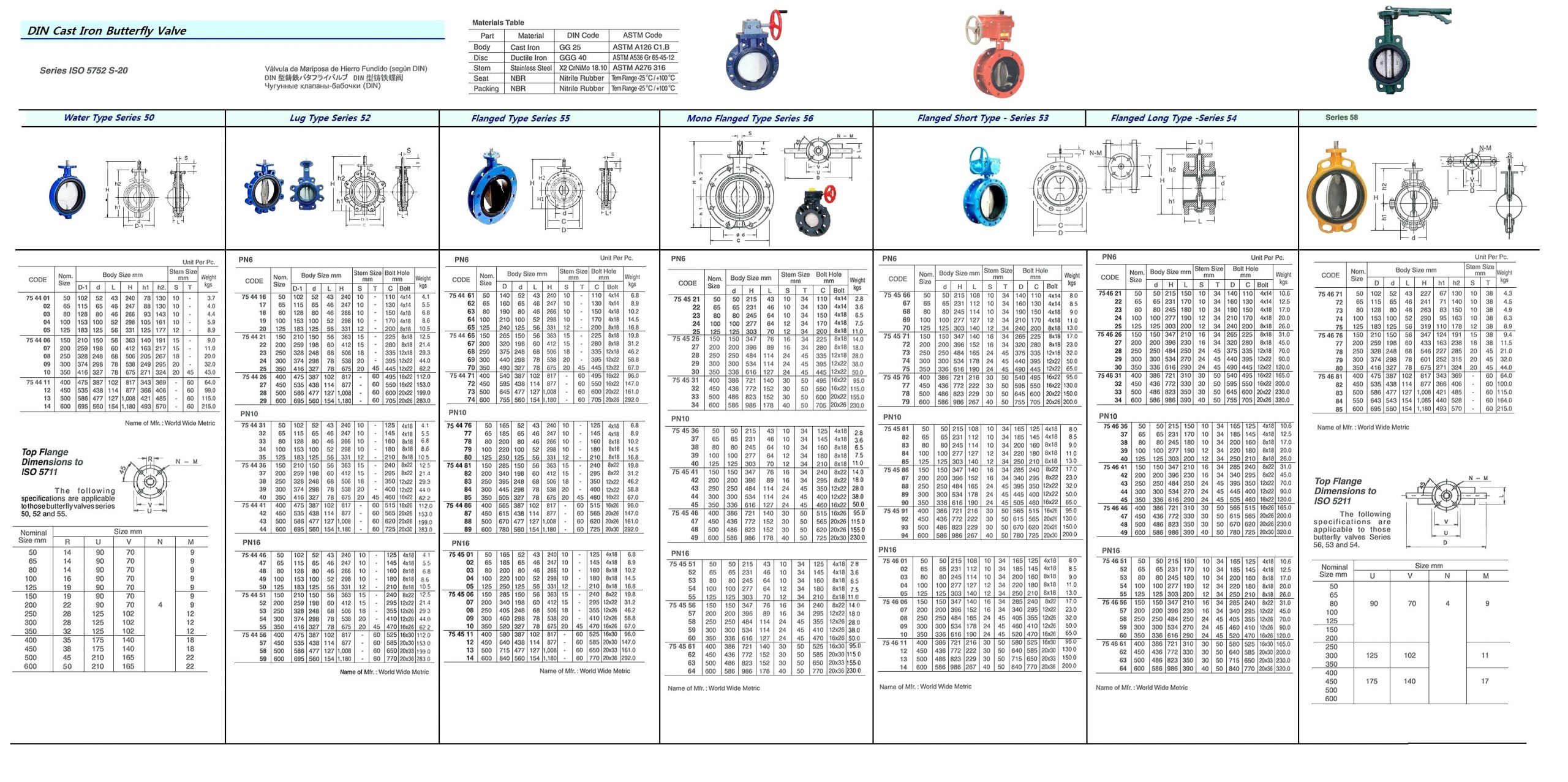 BUTTERFLY VALVE (DIN), CAST IRON, ISO 5752, MONO FLANGED TY, SERIES 56, PN10, SIZE 65 – PC