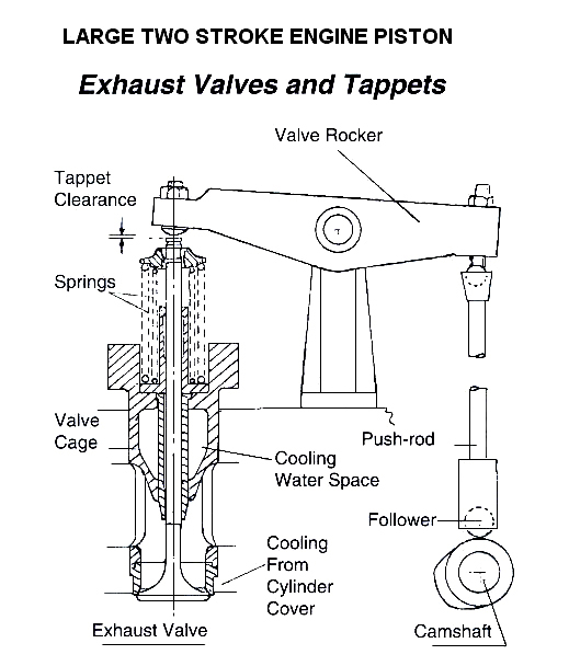 LARGE TWO STROKE ENGINE PISTON DIAGRAM, EXHAUST VALVES AND TAPPETS – LOT